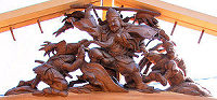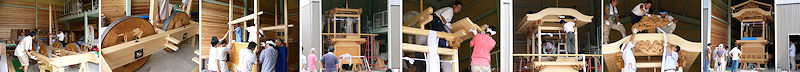 先週の石田組とひ組を撮ることができたので、祭典前夜祭の昼間に福田中走り回らなくてもよさそうです。 ナガタ電気さんにて恒例の注連縄作り、立派な注連縄が出来ました。本通りは側溝の工事中、舗装されていない状態とカラー塗装を撮りました。 2004/09/19_昨日から天気予報とにらめっこで、朝早起きして窓の外を見たら日が射しているのでホッとしたのも束の間、本降りになったりして、それでも8:45に中島地区/石田組の屋台小屋へ行ったら式典の準備をされていました。 2004/09/11_浜北宮口祭典へ行ってきました。今年は先代二福神車を中心に見学です。あの名古屋の山車には、やはり名古屋のお囃子や蝋燭提灯がよく似合います。 2004/08/29_昨日は無事花火を見ることができました。昨年から会場が変わったので、家の真東で上がります。特にフィナーレは圧巻でした。 2004/08/28_夏の終わりの福田の花火。台風が来ているので心配ですね。天竜山東まつりの様子をUPいたしました。中日新聞「祭り自慢」で福田シリーズが始まっています。 2004/08/22_午後から二俣まつりを見に行ってきました。雲りで見る方としては楽でした。お目当ては阿蔵/白山連。屋台は小池佐太郎棟梁、彫刻は福田/宮組・十三番町屋台も手掛けた奥出康運さんです☆ 2004/08/22_先週行った天竜市横山まつりの様子をUPいたします。うかうかしていたらもう二俣まつりになってしまいました。 2004/08/17_せっかくのおかんのんさまの日ですが雨。今週はこんな天気でしょうか。アテネは金メダルのニュースが続きます。 2004/08/15_日焼けした額の皮がむけて夏休みも今日で終わり。あいにくの天気でしたが完成した「敷地」屋台のお披露目を見学させていただきました。長い間HPでお知らせしてきた彫刻が屋台に付いて立派な姿となり、感無量です。関係者の皆さんのご努力に頭が下がる思いがいたしました。 2004/08/14_月曜日に訪問した彫刻師・山田峨聖さん工房の様子をトピックスに追加。堂宮彫り一筋60年余の山田さんの鑿から生み出される彫刻は、いわゆる昔ながらの屋台彫刻で味があるなあと思います。 2004/08/08_「石田組」屋台の組み立ての続きを見せていただきました。破風・彫刻が付くと立派な本格屋台の姿となり感心しました。夏休み二日目にして腕と顔が見事に日焼け。試験曳きまでやった石田の皆さんお疲れ様でした。夏休みといえば昨年は「昭和組」試験曳き、一昨年は「十四番町」解体と、平野さん関係の屋台に縁があります。 2004/08/07_今日から夏休みに入りました。袋井、三ケ日と花火が続きます。今週組み立てられた「敷地」屋台の様子をトピックスに追加。 2004/08/03_運良く「石田組」屋台の組み立てを見学させていただくことができました。組の方々の熱意が実って素晴らしい屋台になりそうです。 2004/07/31_雨模様の週末。暑い日が続いていたのでちょうどいいお湿りです。7月も今日で終わり、あと一週間で夏休みがやってきます。皆さん予定は立てられたでしょうか。GWに福井遠征したので、今回は…嫁さんとの攻防が続いています。 2004/07/28_平成15年の祭典にて、夜の中川通り屋台統一行動時、祭典本部における各屋台紹介アナウンスのために協力させていただいた原稿を紹介。今年度版として一部改訂してあります。 2004/07/24_暑い日が続きます。鰻を食べて元気ハツラツ…今年は夏バテしないで点滴のお世話にならないようにしなくては。 2004/07/18_今日は竜洋のなぎの木会館で「章晴彫刻展」がありました。こちらは伊藤さんの最新作。屋台の完成が楽しみです。 2004/07/17_愛知県半田市立博物館で「立川一門展」を見てきました。入り口を入ったところに、遠州秋葉山神門の木鼻と力神が展示されています。今回の目玉とか。内部は撮影禁止なので残念ながらお見せすることは出来ませんが、見応え十分。とてもよい勉強になりました。期間は平成16年7/17~9/12まで。常設展示の山車は「亀崎西組花王車」でした。半田は昨年の亀崎潮干祭以来です。なんだか懐かしかった。着いた頃は晴れていたのに、帰りに岡崎付近まで来て大雨。「マズイ洗濯物出したまま!」でも静岡県に入ったら降った形跡なしでホッ。 2004/07/12_複数の人から「山梨行くだら」と言われたので、なんだか暗示にかかって行かなくてはならないような気分になり、昨日午後から見物に行ってきました。二輪屋台なのでどうも勝手が違うというか、屋台のアングルを決めるのに迷います。こんな写し方でいいのかなと思いつつも「お祭りへ行こう」に追加。 2004/07/11_屋台の虫干し。暑い中、小屋内の整理清掃も。お疲れさまでした! 2004/07/07_TVドラマ「ウォーターボーイズ2」が始まりましたね。ロケ地は懐かしのわが母校です。どこが映っているのか気にしていたらストーリーはわからなくなりましたが…。伊藤さんの彫刻展の記事が中日新聞に掲載されています。 2004/07/04_昨日の土曜日に中川通りの並木で、今年初めての蝉の声を聞きました。梅雨明けはまだですが、いよ
