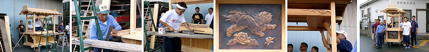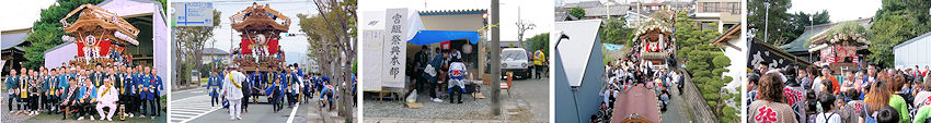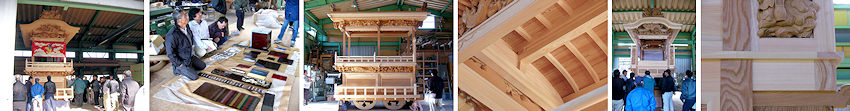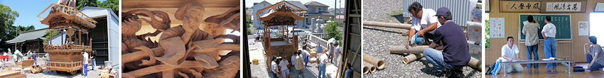 が立ち上がらなくなってしまい、専門のサポートの方にも見てもらいました。「物理的トラブルのようですが、特定は難しいですね」とのことで、仕方がないので泣く泣くマザーボード、CPU、メモリを同レベルのものに新調することになりました。数万円が消えていった。はぁ。 2004/06/12_台風一過。梅雨なのでカラッとしない天気です。冊子「梔組屋台完成への歩み」ができました。屋台へのこだわりが凝縮した内容の濃い一冊です。 2004/06/06_長いこと不明だった「十三番町」屋台後面の鬼板・懸魚の題名が、彫栄堂・早瀬さんのご協力もあって判明しました。太平記の一場面で、村上義光の雄姿です。詳しくは山岡宗八氏の「新太平記」などを参考にされるとわかりやすいと思います。 2004/05/30_ホットカーペットを片付けて井草ラグを敷いた。夏の香りが部屋一杯に広がって爽快。エアコンも洗浄して梅雨の準備です。 2004/05/25_「イトウ彫刻」はいよいよ虹梁が姿をあらわしました。これで木鼻が揃うと屋台の表情がなんとなく想像できますね。楽しみです。 2004/05/22_雨の日が多くて洗濯物を乾かすのに一苦労です。浴室乾燥とか乾燥機能付き洗濯機があれば便利なんでしょうけど。早速デジカルビ丼を食べました。 2004/05/13_九州の方では入梅したとか。ここらもじきにでしょうが、それまでは土日晴れて欲しいものです。近々公開予定のGW特集の制作が大詰めです。 2004/05/10_「お祭りへ行こう」をリニューアル。遠州地方の祭りを少しずつ紹介予定です。 2004/05/07_皮肉なことに連休が終わったらいい天気。もう少しずれてくれればいいのに。中央公民館にて福田の町の水彩画展をやっているようなので、見にいってこようと思います。 2004/05/03_今日は昼ごろに雨が上がったので、午後から浜松まつりへ行って祭りの雰囲気を楽しみました。駅前の様子、屋台はシート被っています。 2004/04/28_やっと仕事が終わって連休に突入。正月休みからあっという間でした。計画も立てたし、事故怪我の無いよう有意義に過ごしたいと思います。 2004/04/25_今日は自治会のドブ掃除でした。昔ほどドロが沢山溜まることはありませんが、側溝の蓋の開け閉めはやはり大変です。お疲れ様でした。GWの遠出(するかもね)を前に車のタイヤを交換。見た目と乗り心地が明らかに違います。もっとも、磨り減って劣化したタイヤと新品とでは違って当たり前ですが。やはり安全第一です。 2004/04/20_家の納屋を片付けていたら、奥のほうから昔のビール瓶が出てきました。私が生まれる前からあったようです。「イトウ彫刻」は仕上げにとりかかっており、鬼板の龍は目を入れるだけのようです。 2004/04/14_横須賀が終わるとあっという間に連休が来て、その一ヶ月後には入梅のニュースが聞こえてきたりします。連休の予定もしっかり練らなくては。 2004/04/13_先月撮影させていただいた「ひ組」屋台の彫刻写真を公開。背景を消して見やすく工夫してみました。かなりの手間がかかっています。写真より実物はもっと厚みがあって見ごたえがあります。 2004/04/03_遠州横須賀三熊野神社大祭は素晴らしい祭り日和♪ 2004/04/02_「イトウ彫刻」もいよいよ最終段階。脇障子の仙人の荒彫りが終わりました。仕上がって屋台に付けるのが楽しみです。 2004/03/30_先週の土曜日に洗車しました。土日月といい気分で乗ることができましたが今日は雨。また洗ってやるのだ。 2004/03/29_気がつけば後一ヶ月でGWですよ。ついこの前正月休みが終わったと思えば早いものです。今週は横須賀まつりですし。お天気が気になりますね。 2004/03/28_宮口/梔組天幕披露を見学させていただきました。午後1時の餅投げには間に合わなかったものの、好天に恵まれ鮮やかな天幕が屋台に映えていました。 2004/03/22_半田乙川まつりの速報を期待された方もいるかもしれませんが、残念ながら静養のため行けませんでした。体が第一。コンテンツも遅れ気味ですがご容赦ください。子供の頃は土曜の夜8時には必ずテレビの前に座ったものでした。さよなら長さん。 2004/03/18_ついに風邪でダウン。感染性胃腸炎による嘔吐と下痢で仕事を2日間お休みしてしまいました。皆さんもお気をつけください。リニューアル中だった「屋台各部の名称」をやっとUPいたしました。今回も小池工務店さんのご協力をいただきました。ありがとうございました。 2004/03/08_たまにパソコンショップに行って印刷紙とかのちょっとした消耗品を買うと、いい気分転換になったりします。パッケージも新しくなっていて新鮮ですし。モノは試しで「Tシャツ転写紙」も購入。さて何をプリントしてやろうかな。リニューアル中の「屋台各部の名称」も近々オープン予定です。 2004/03/07_昨日は雨/曇り/晴れ/雪で風も強いという荒れた一日。「ひ組」屋台の解体が行われたので、見学させていただきました。間近で見る彫刻は実に見事で、撮影にも協力していただいたので整理ができ次第紹介していこうと思います。寒い中お疲れ様で