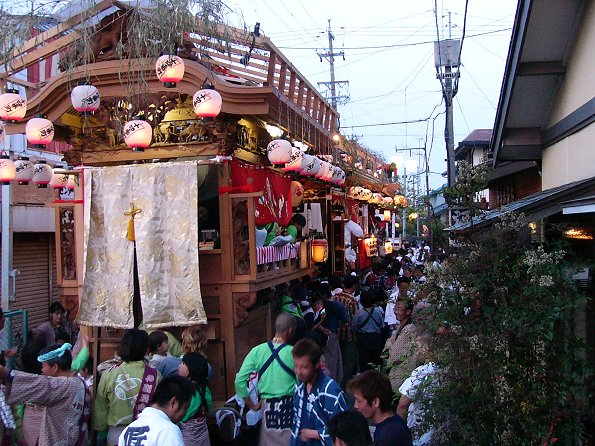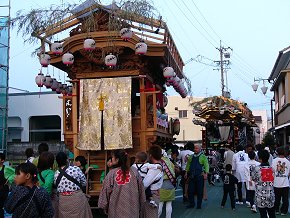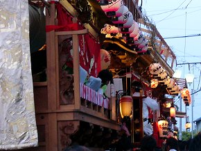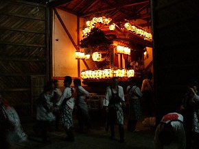 寺井酒店さん角を北へ曲がりT字を東へ曲がって「ひ組」方面へ。その後「奴連」にくっついてNTT前を西へ向かって格納までみました。普段なら苦になるような距離も屋台にくっついて歩くと不思議と平気なもの