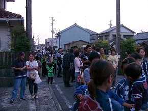 中央公民館から南へ出てヤマヨさんの交差点から東向きに並びます