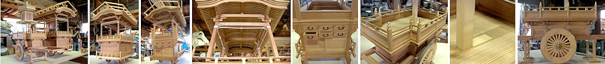 8月末までの展示ということで、それまでに是非この目で見たいと思い行ってきました。 2009/07/11_朝蝉が鳴くのを確認。いよいよ梅雨明けでしょうか。 2009/07/05_昨日見学させていただいた竜洋江口地区の屋台螺鈿作業の様子をUPさせていただきます。一昨年の金箔に続き、試行錯誤で自力での螺鈿作業に取り組まれています。いい勉強になりました。 2009/07/04_ 浜松市名塚町の小池工務店さんで実物1/5のミニ屋台を見学。浜岡型の二輪屋台と掛塚型一層唐破風屋台。組み解し可能な本格的な造りで、組子も全て解せて抽斗も収納可。浜岡型二輪屋台も精巧な造り、心棒は実物同様に可倒式納可。惚れ惚れする出来で見ていて飽きないし手間もかかっているわけで値段も付けにくいとのこと。その辺は未定だそうです。 2009/06/28_福田/向岡七番組の方から、屋台引き回しの練習が8:00頃からありますのでトピックスにとのご連絡をいただきました。しかしながら朝起きると雨。まさかシートをかけてまでやらないだろうと判断し断念しました。また後日やるようでしたら事前にご連絡いただければできるかぎり馳せ参じたいと思います。森のとうもろこしが旬。茹でると甘くて美味しいんです。 2009/06/20_竜洋の昆虫館へ。いやぁいろんなカブトムシやらクワガタムシやらいるものです。昨日で通れなくなった於福橋(於保村と福田村を結ぶ橋)、長いことお世話になりました。 2009/06/13ドライブがてら猪鼻湖を一周。三ケ日の蜂蜜屋さんではちみつマーガリンを購入。さっそくパンにつけて食しました。美味い☆ 2009/05/24_磐田市堀之内新屋台披露を見学させていただきました。朝から生憎の天気で気持ちが萎えましたが、ここで見ておかないと祭典日が福田と重なるため一生見ることができないかもいれません。ダメもとで行った甲斐あり次第に雨が止んでいき、無事曳きまわしも行われました。思えば以前見学させていただいた敷地・江口のお披露目も雨だったような…とにかく立派な屋台ができてよかったと思います。 2009/05/22_屋台の車輪・梶・ブレーキ等を製作に従事されている方からブログのメールをいただきました。作業中の様子などが紹介されていて興味深く拝見いたしました。動く屋台の縁の下の力持ちであり重要保安部品でもあり、普段なかなか目にすることのない作業風景ですので、これからも楽しみに見せていただこうと思います。 2009/05/21_天竜二俣/古城連でブログを開設されたとメールをいただきました。本年度の年番町に当たるそうです。 2009/05/17_浜松市博物館/寺社彫刻展を見学させていただきました。作品をご提供されている宮崎政光さんにもお会いすることができ、新作を中心にお話を伺いました。意欲的に取り組まれている様子が伝わってきて、いい勉強になりました。今月末までですので是非足を運ばれて実物をご覧になることをお勧めします。その後はメイワンへ移動。かなり久しぶりでガラッと様子が変わっておりました。聞けばLoFtがオープンしたばかりとか。それから谷島屋書店も1フロアー占めていて品揃え豊富で楽しめました。お目当ての本を買って帰宅。 2009/05/01_浜松市雄踏町の宮崎政光さんからご案内をいただきました。浜松市博物館・寺社彫刻の作品展に出品されているそうです。浜松まつりのついでにぜひ足を運んでみたいものです。恒例の雄踏図書館展示室の作品展ではありませんので、場所をお間違えのないようお願いします。 2009/04/25_横須賀三熊野神社大祭の様子をUP。コツコツやっておりましてだいぶ時間が経過してしまい、祭りの感動も薄れた頃にやっと公開。ブラウザーをIE8にアップデート、機能豊富でより便利に。 2009/04/11_半纏の打ち合わせに袋井市川井の染秀七福神さんを訪ねました。袋井消防署の南に自宅兼店舗を構えられていて、前には信玄袋(巾着袋~裏打ちもされているしっかりしたモノですよ)などが展示されていました。ちょうど模様替え中の本間さんとお話をして帰宅。 2009/04/05_地固め・田遊びを見学、真庭さんもビデオ撮りされてます。 2009/04/04_遠州横須賀三熊野神社大祭へ行ってきました。街中の芸術作品? が目につきました。三社公園の桜はいい感じ、せ組が囃子奉納。 2009/03/30_約1年ぶりの浜名湖パルパルへ行ってきました。昨年工事中だった大観覧車にも乗ってたところ、風でゴンドラが揺れるので怖かった。 2009/03/29_浜松市/三島町屋台新築披露を見学させていただきました。現代的で威風堂々たる屋台、三島町さんのシンボルとして末永く活躍されていくことと思います。 2009/03/23_買って1ヶ月の洗濯機(モーターに定評のあるH製)が壊れました。電源は入るけど動かない。中のパルセーターというやつが回転しないんですな。日々の洗濯になくてはならない存在であり早速販売店に連絡、なんとか修理の方が来てくれてひと安心と思いきや彼曰く「駆動系のトラブルですね、修理するなら持ち帰って工場でユニット交換となります」「そっちの責任なので代替品く