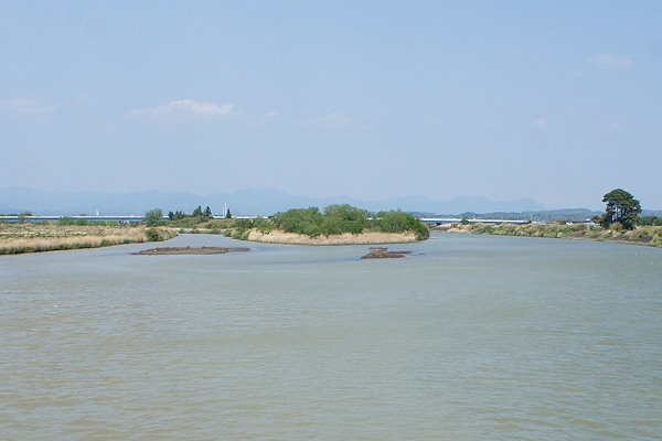 昔の太田川はどこを流れていたのだろう? 現在は「古川ふるかわ」という名で残っているとのこと。デジカメ持って川を探す旅に自転車で出かけました。先ず辿り着いたのが太田川にかかる和口橋。趣のある橋から北を望むと太田川(左)と逆川(右)の合流地点を見ることができます。両川にかかっているのが二瀬橋。とりあえず二瀬橋の西側たもとまで行ってみることにします。 |