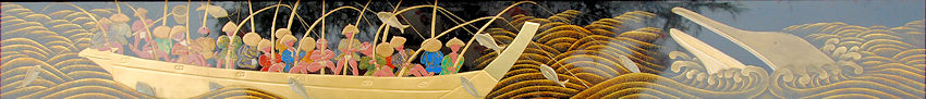 鷲,弄玉仙人 貘,龍 麒麟,獅子 七福神 桃南蛮人 唐子 錺金具 天幕 肘掛板 |