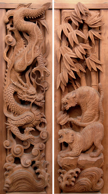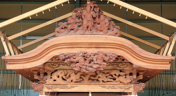 ご協力:浜松市彫栄堂 早瀬宏さん(2011/05/28)鬼板・懸魚は彫栄堂受けで一門の彫師が制作、木鼻は早瀬利三郎作、他は浦部一郎作を確認