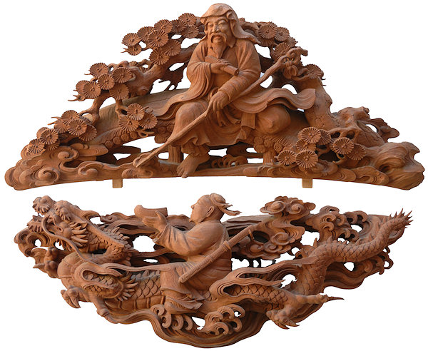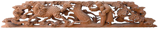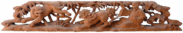 あらゆる仙術にたけた後漢の仙人・張道陵が手なずけた獅子を使って悪い虎を退治するところ