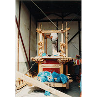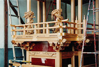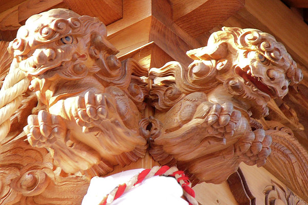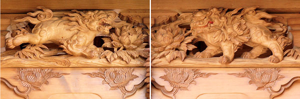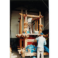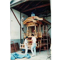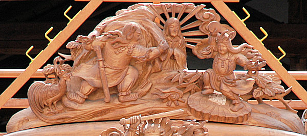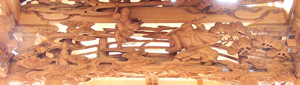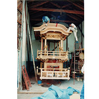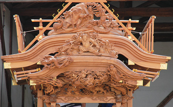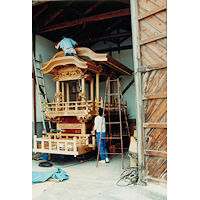 龍虎 牡丹に唐獅子 備考 福田でひ組と並び2台ある二重屋根の造りで、平野式二軒屋台と呼ばれる 平成4年(1992)解体修理 大孝建築/平野 道男(信孝)