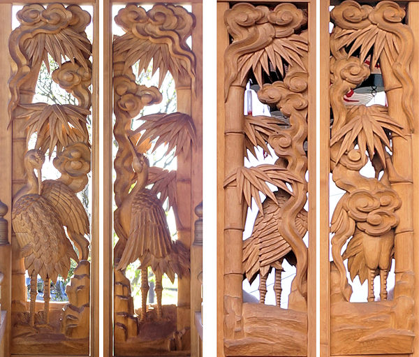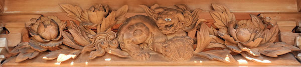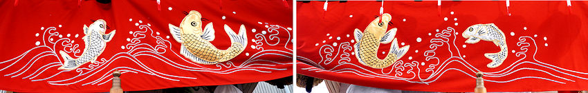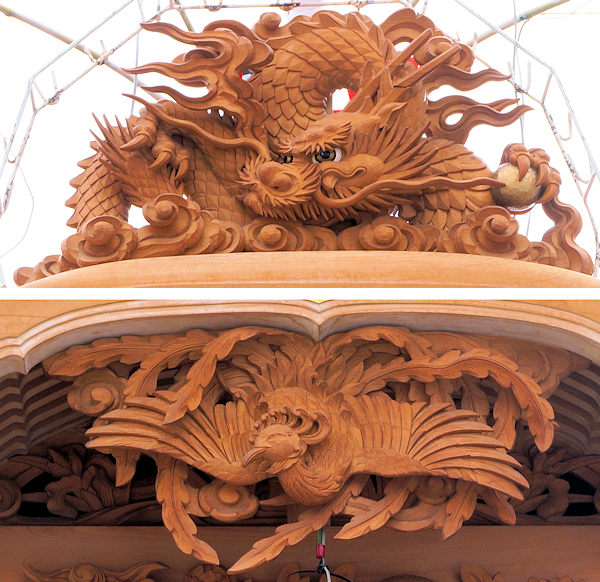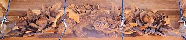 龍・鳳凰(前後) 菖蒲(前後) 獅子 獅子に牡丹(前・両側面・後) 竹に鶴 波に千鳥(前・両側面) 天幕 備考 |