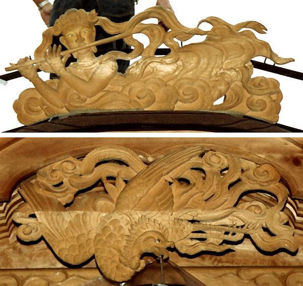 《中島神明宮祭典》 《備考》 《彫刻》 《彫刻》 龍虎 天人,鳳凰 雲に鳥,水に鳥 鷹狩りの鷹 磐田市福田中島/新田組屋台の運搬
