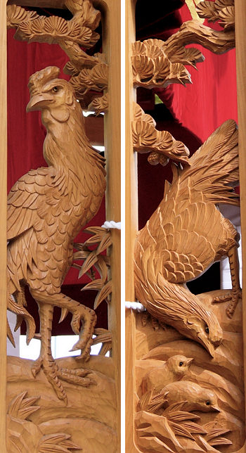 飛龍 獅子 鳳凰 鯉に瑞亀 獅子 鶴の舞 軍鶏の夫婦 日本鶏(地鶏 東天紅 小国)と子犬 備考 |