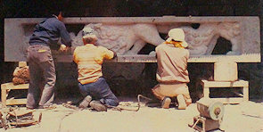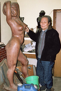 岡崎は古くから知られた石の産地。その石を材料として芸術品を生み出す石彫家・鈴木政夫(すずきまさお)氏は在野のトップであり石彫の師匠であった。毎朝家の前を通り仕事場へ通う鈴木政夫氏と親しくなり、仕事が暇なときに訪ねては石彫を習い多大な影響を受けた。