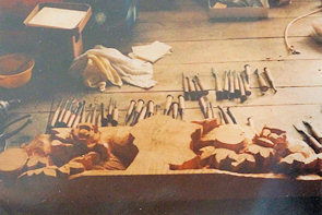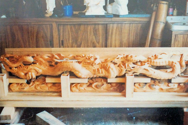 木彫刻の師匠は堂宮彫師として生計を立てている父(鐘平さん)である。