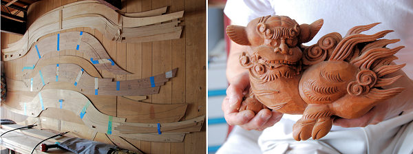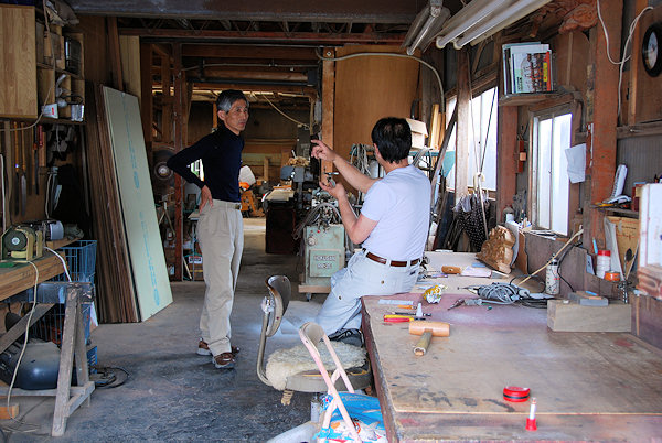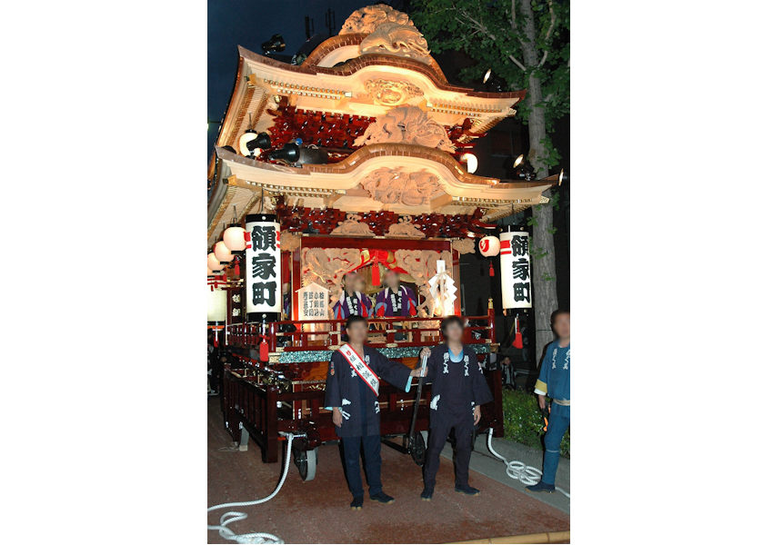2008/05/01木曜日 「屋台の話ですか。いやぁうちはとくにこれといって自慢してお話しできるようなことはないんですよ。台数はおかげさまで40台以上任せていただきました。昭和59年に完成した豊西「は組」から大工として関わるようになりましたね。周りは先輩ばかりで、特に教えてくれるわけではないので、仕事なんて見よう見真似で覚えるんです。特にこういう屋台っていうのは組子が難しいですね。数も多いので手間がかかります。彫刻専門でやっていた親父が今年の1月に亡くなったものですから、領家町さんの屋台は後ろ側がまだ彫刻が付いていないんです」