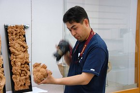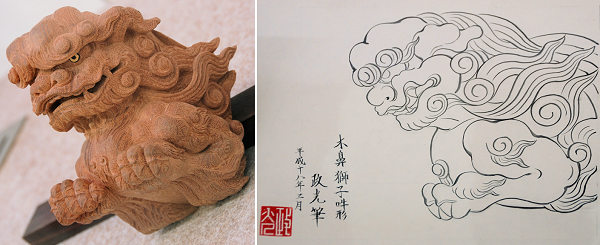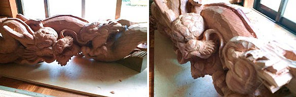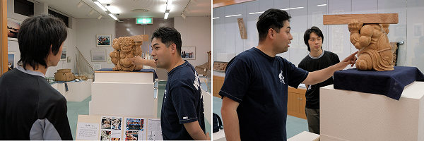 宮崎 「ええ、いろいろ皆さんから話を聞いていますと、多くの方が立川流彫刻がいいと言われます。気品・迫力・精密さ・表情など、とにかく奥が深い。もっと勉強して自分なりの作風として表現していきたいです。獅子なんかは立川昌敬さんのが好きですね」