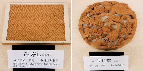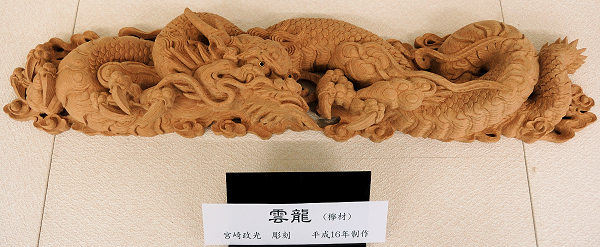 浜松市雄踏町で活動中の若手彫刻師・宮崎政光さんの作品展が雄踏図書館の展示コーナーで開かれています。今回は磐田市掛塚横町・太田昇さんのご案内で、宮崎さんから興味深いお話をうかがうことができました。