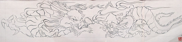 ↓制作中の龍と下絵