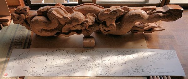 「あの力神に持たせようと思って龍を彫っているところです」