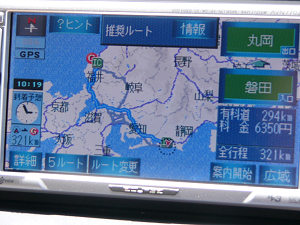 午前10時19分出発。天気も良く絶好のドライブ日和。カーナビに入力すると距離321㎞、約4時間半もの道のりです。でもこれは順調にいけばの話。磐田ICから東名にのって愛知県の小牧の手前あたりまでは順調だったのですが、そこから一宮まで長い渋滞にはまってしまいます。到着予定時刻は午後3時前ですが、刻々と遅れていく。映画「バック・トゥ・ザ・フューチャー」のデロリアンみたいに空を飛べる時代が来ればいいのにと思いました。