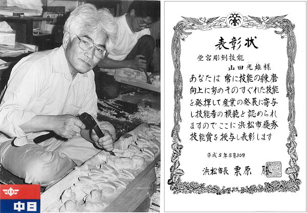平成4年中日新聞掲載写真と浜松市表彰状