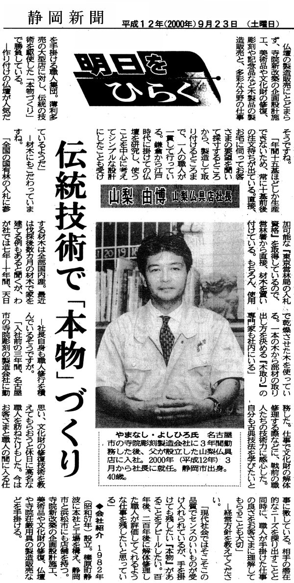 2001/07/24静岡県榛原郡榛原町静波 今回訪れたのは榛原町静波にある山梨仏具店さん。福田町南島の川島初雄さんと共に取材に伺いました。