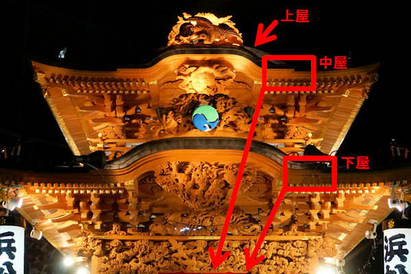 「唐破風軒搦入母屋造り 二重屋根御殿屋台」