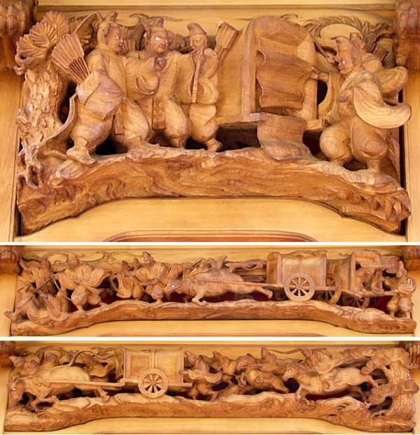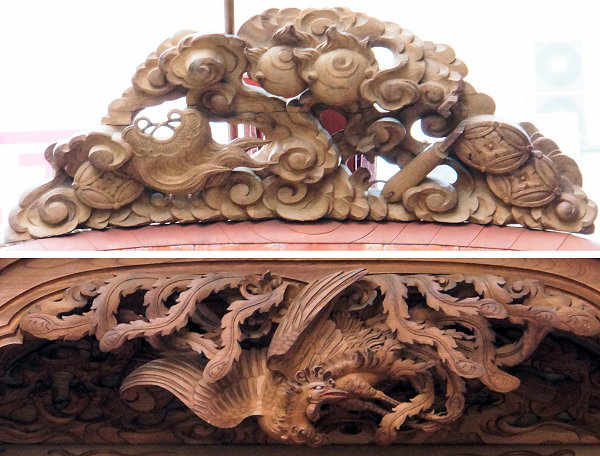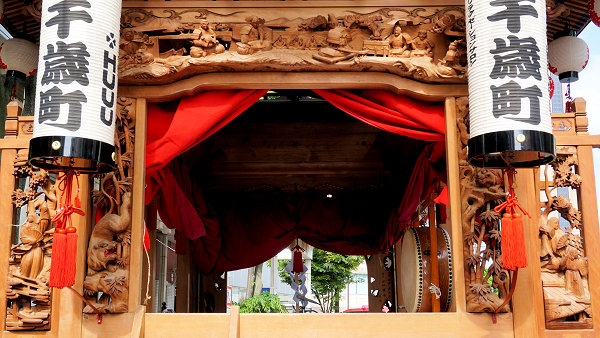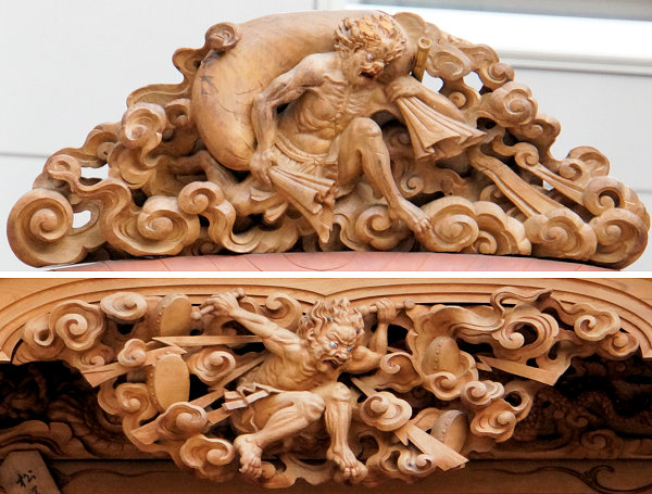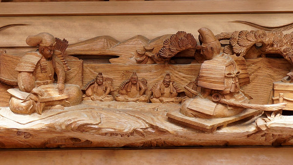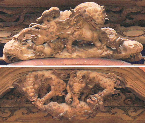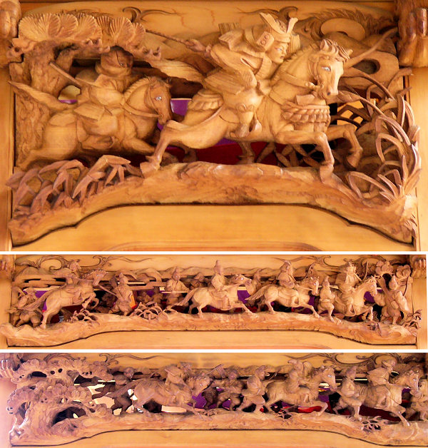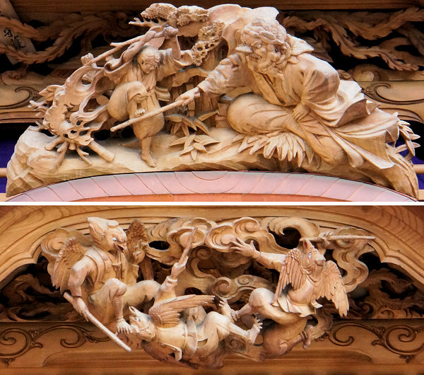 風神雷神 右側面~平治物語・六波羅行幸※ 左側面~義経と弁慶(→黄瀬川の対面へ続く) 宝尽くし・鳳凰 ↓静御前の舞 常盤御前と牛若丸↓ |
