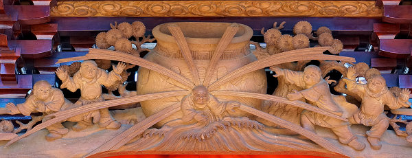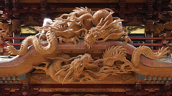 風神 破風の巻龍 木鼻~獅子・貘 素戔嗚尊の大蛇退治 高欄の巻龍