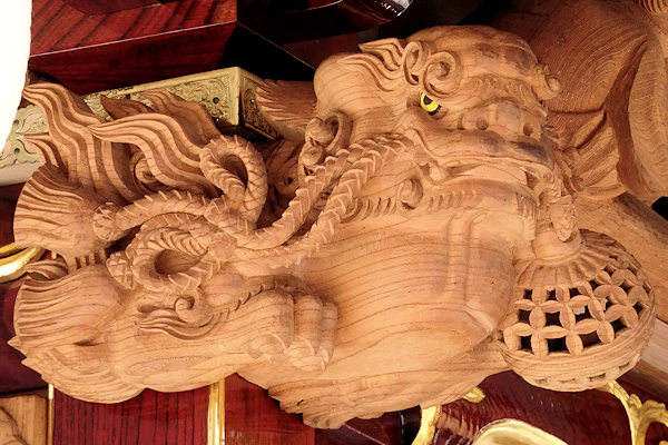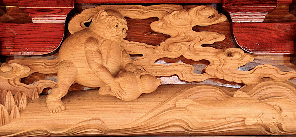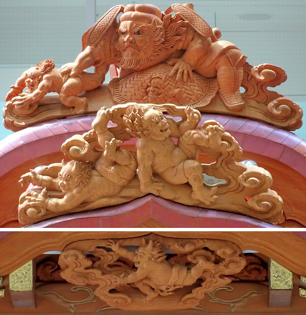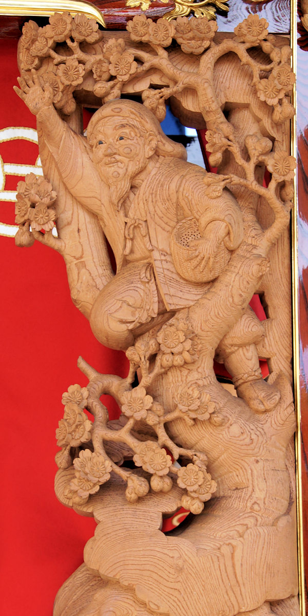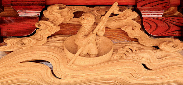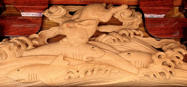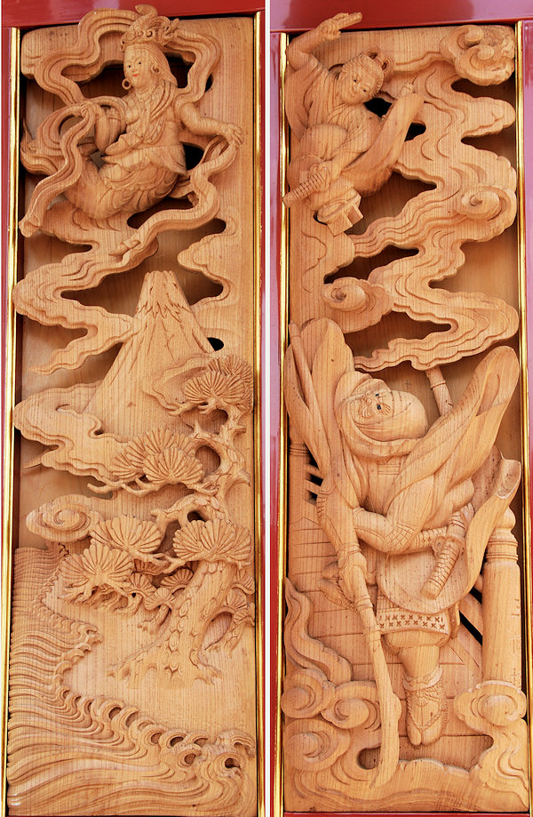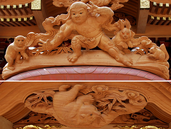 新町(しんまち) 建造:昭和63年(1988) 棟梁:高塚房太郎 彫刻師:山田峨聖 photo:mitsuya noriyuki 山田峨聖さん訪問記2004/08/09