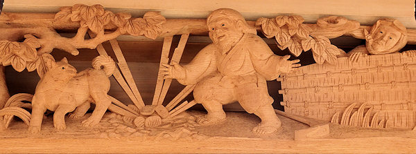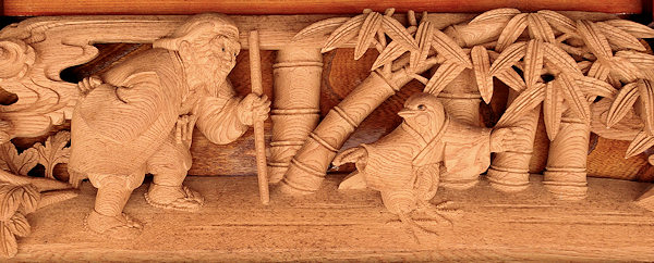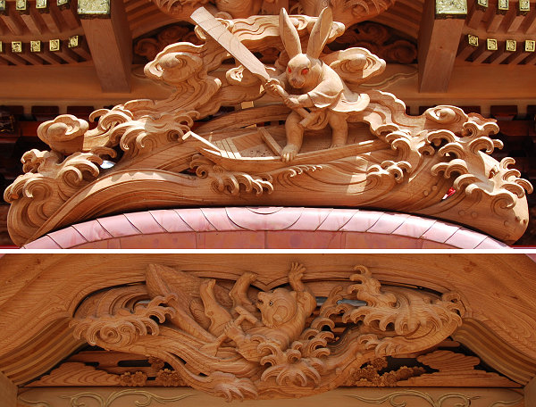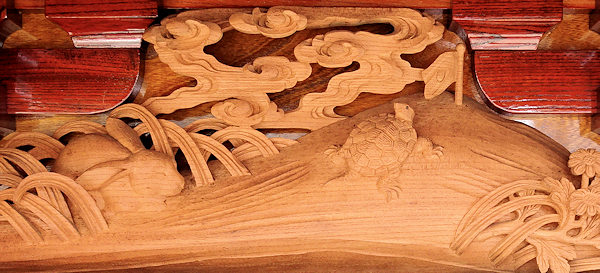 腰蟇股~舌切り雀 竹取物語 右側面腰彫り 桃太郎 河童の相撲 浦島太郎 因幡の白兎 左側面腰彫り 一寸法師