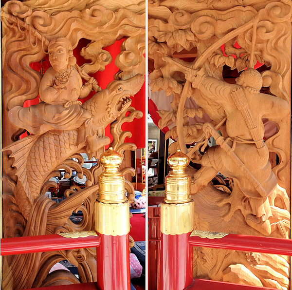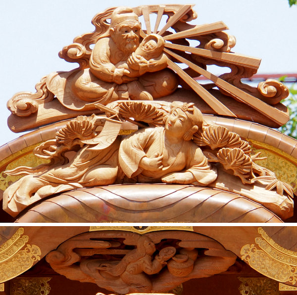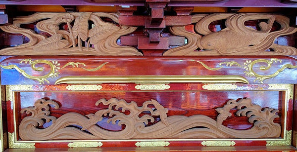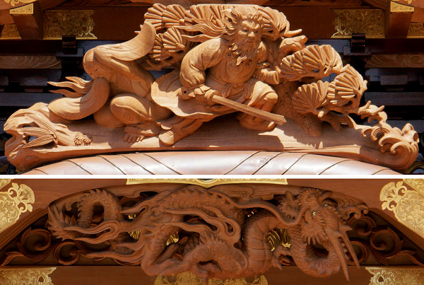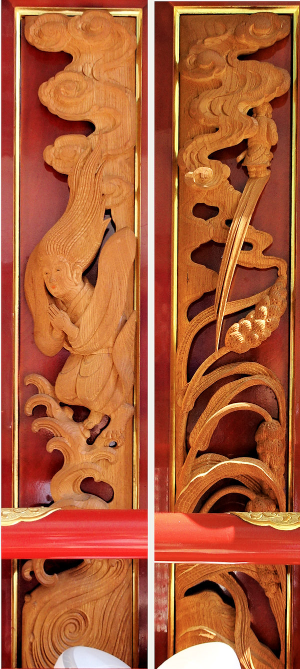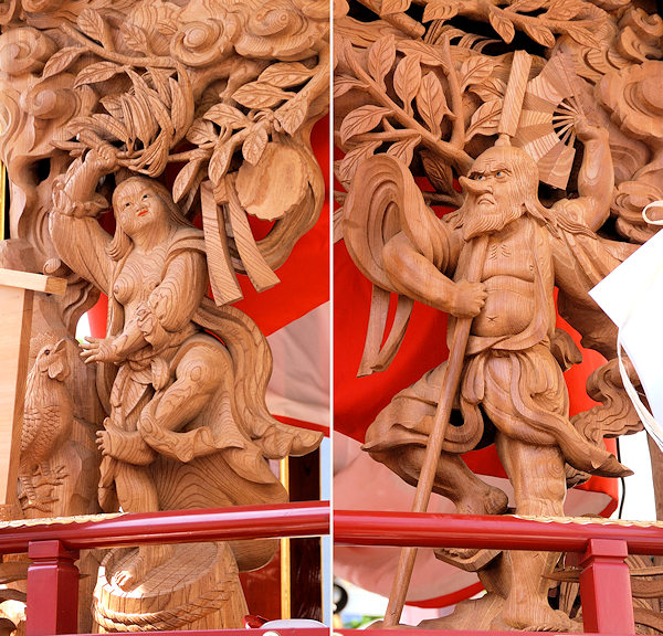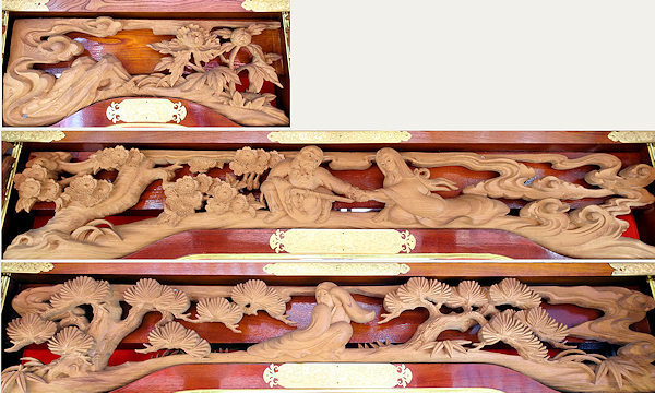 天の岩屋戸 高欄の巻龍 腰彫り・腰板 木花之開耶姫・木花之佐久夜毘売 このはなのさくやびめ