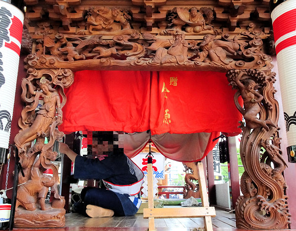 秘蔵の兵法書/六韜三略を盗み見る義経(笹竜胆紋)に鬼一法眼が刺客を差し向ける場面かもしれません