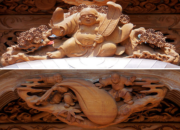 福禄寿 布袋と唐子 宝尽くし 恵比寿 龍虎 木鼻