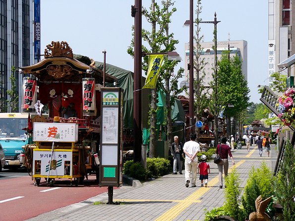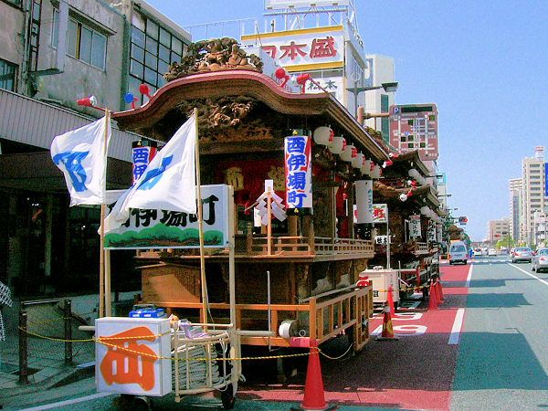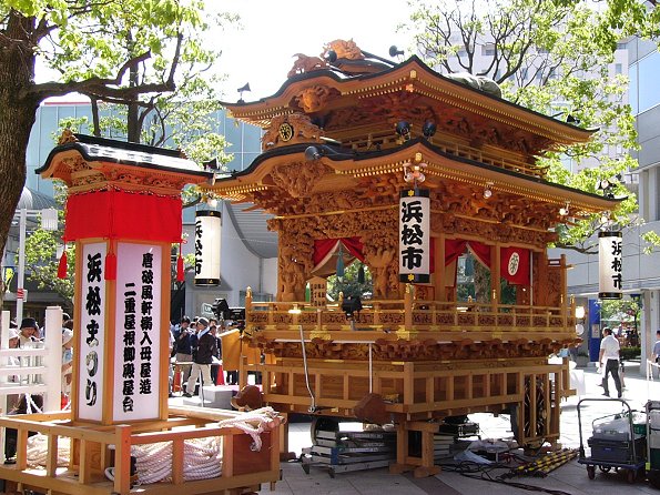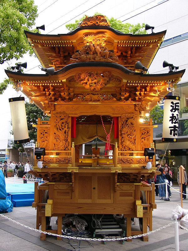 駅前のブースで2005浜松まつりガイドブック(一部100円)を購入。その後連尺通り~広小路通りで待機中の屋台群を見てまわり彫刻を300枚ほど撮影、天気がいいので逆光による失敗も多々あります。