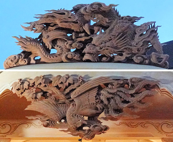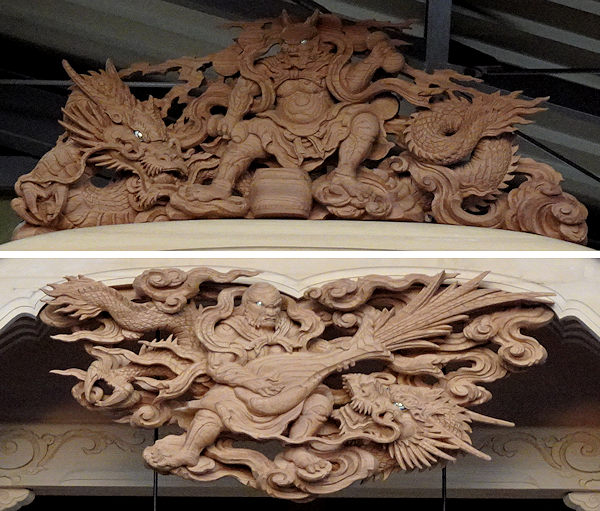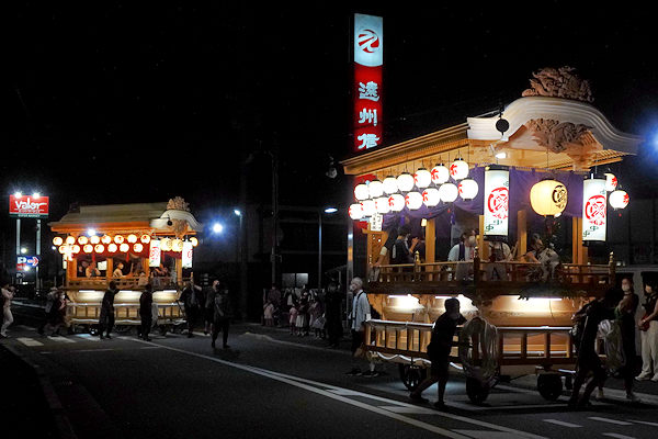2022/08/15(月)浜松市東区中野町祭典 A正面 龍/鳳凰 B正面 雷神/風神 照明に灯が入り出発準備が整います! |