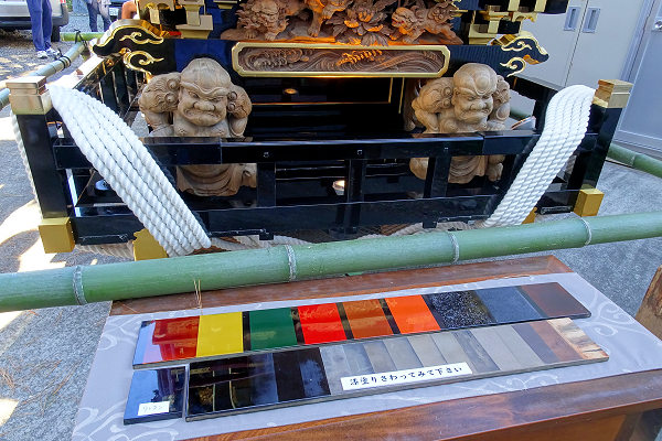 2018/11/10土曜日 磐田市中泉坂上町/心誠社屋台解し~ちなみに今年の祭りで撮った心誠社は昭和13年(1938)建造で満80歳! 頭領:平野孝/彫刻師:大村善太郎の威風堂々たる傑作屋台です。11月に修理のため解すので見にくればとお誘いを受けていました。 ↓ていうか13:30に着いたらもうこの状態、さすが新川建築舎さん&坂上町さん仕事が早いですね →2010/04/24土曜日_祥雲展 愛知県半田市住吉福祉文化会館 磐田市中泉西町 祥雲展 ↓こんな展示もありました。柾目と板目の違いがよくわかります! 山車・屋台、彫刻や幕の新調修復など祥雲さんの底力をみた気がします。今日はいい勉強になりました。 |