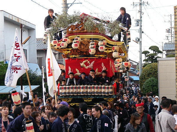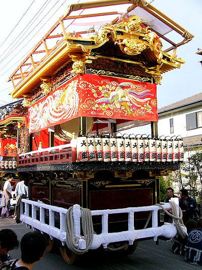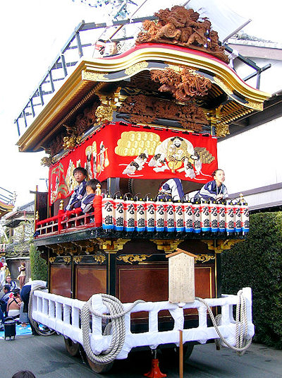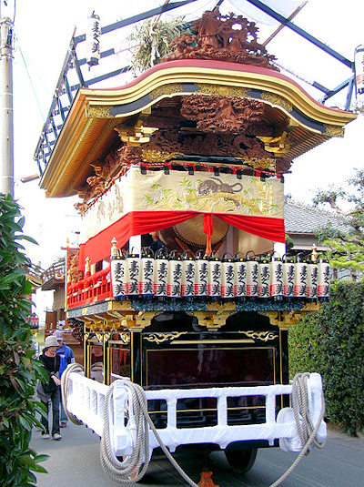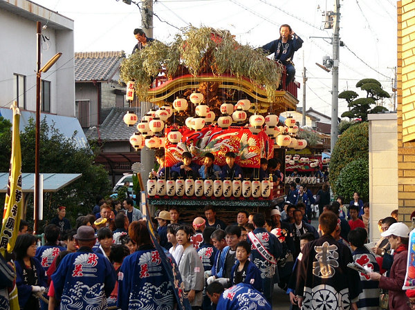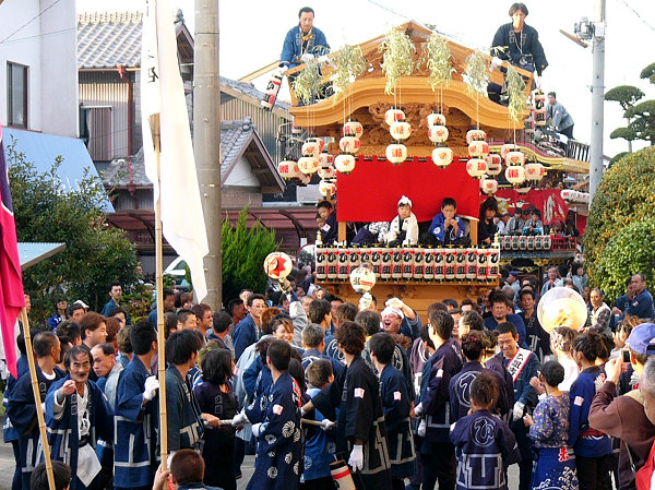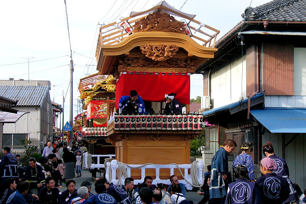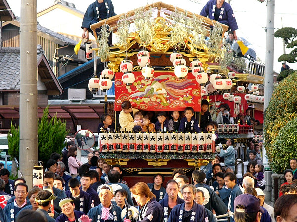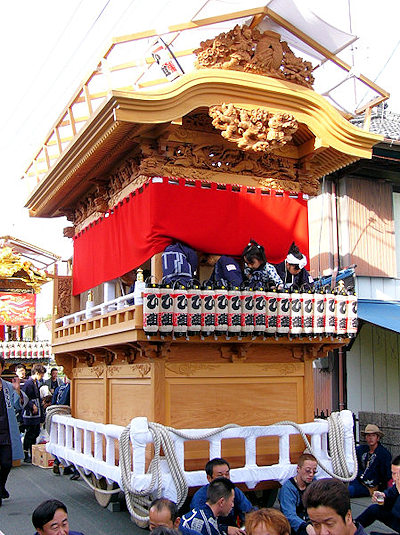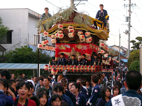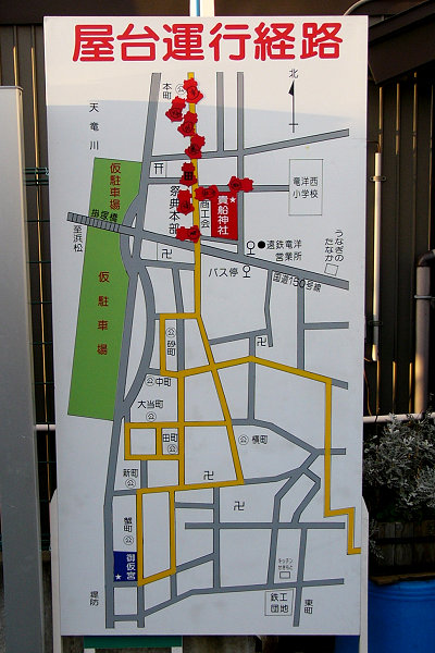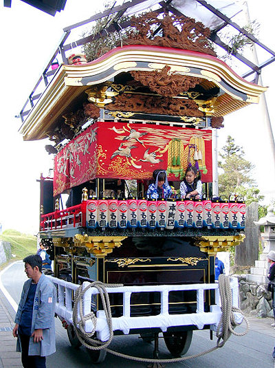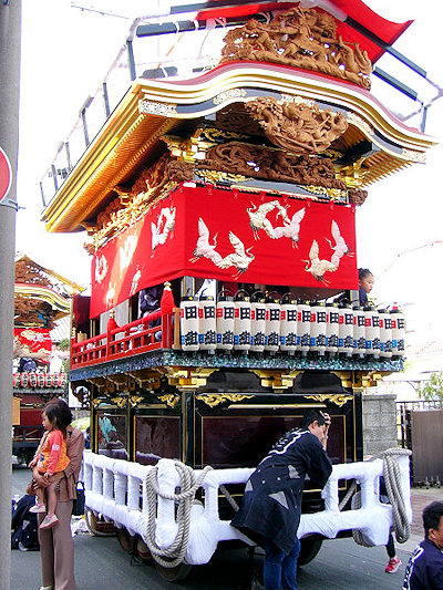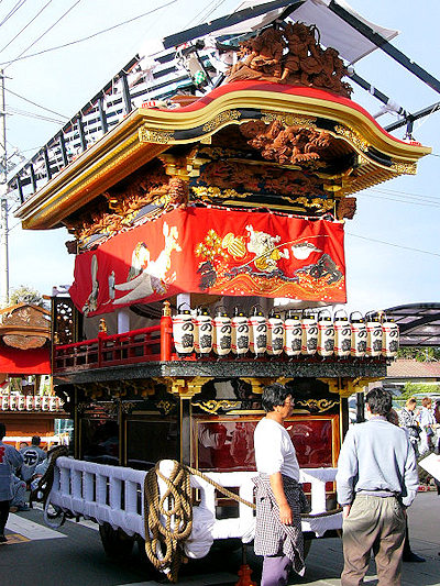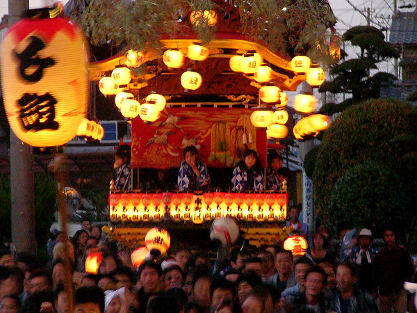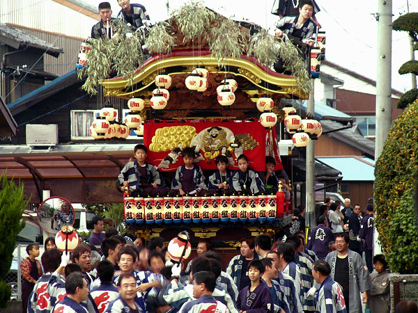 2004/10/16土曜日 磐田郡竜洋町掛塚(かけつか)祭り 10月の第3週末は、素晴らしい天気に恵まれました 午後3時半ごろ掛塚入りして屋台見物です 待機中の屋台をみていきます