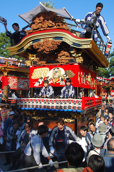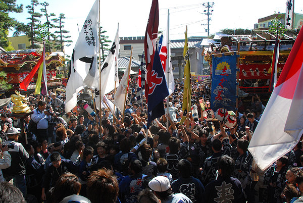 2007/10/21日曜日 磐田市掛塚(かけつか)祭り 半は境内鳥居下にて砂埃に耐えながらの撮影。9台撮り終わるのに約2時間かかります。
