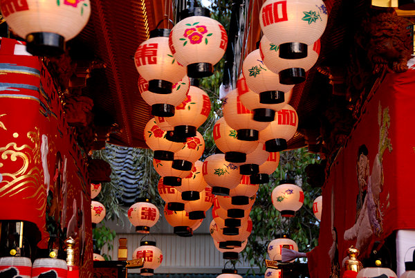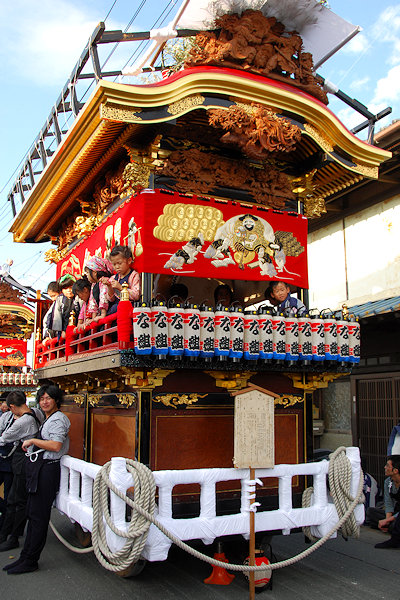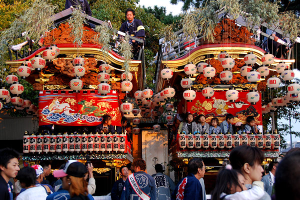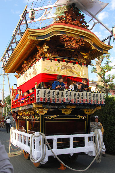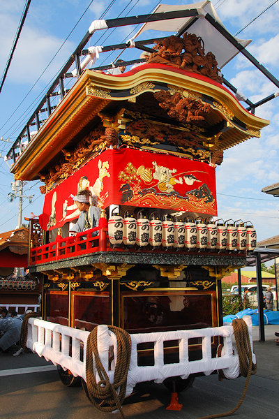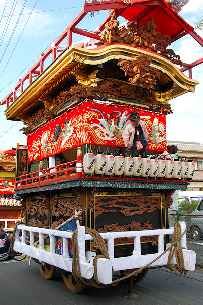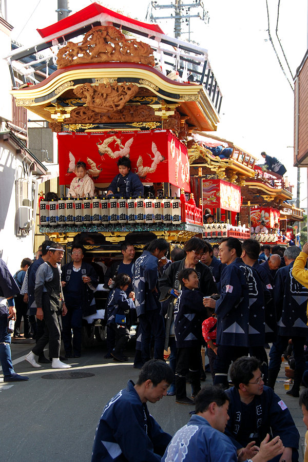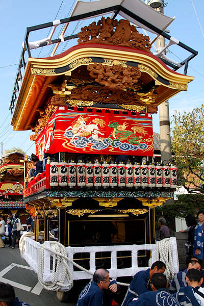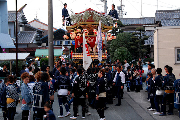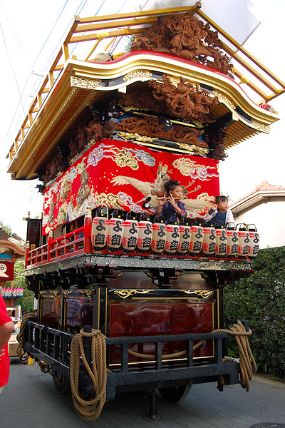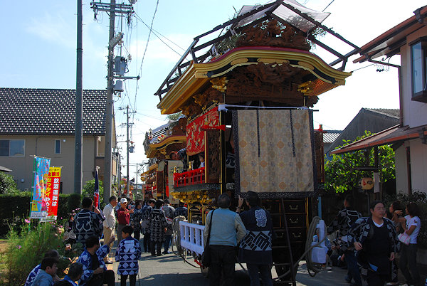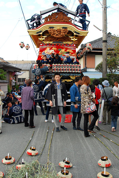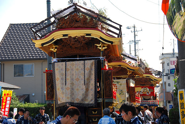 神社へ屋台曳き込み