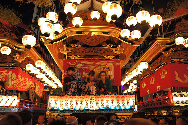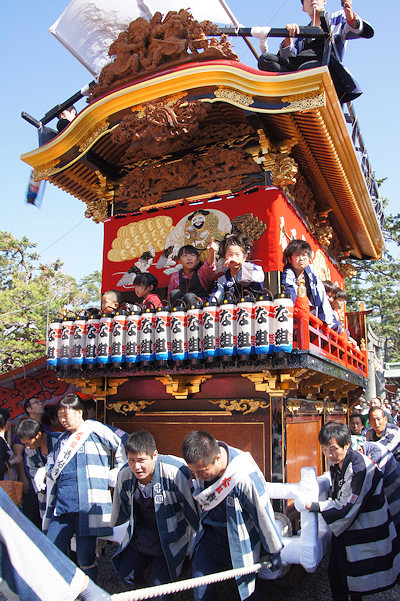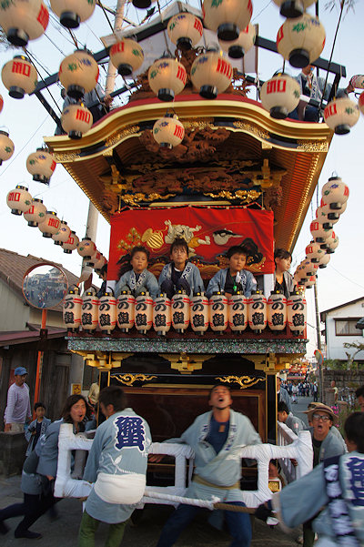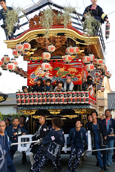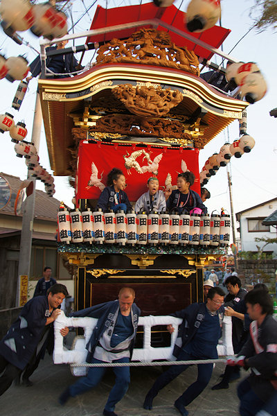 あと「本町」「新町」まで撮りたかったのですが、先頭の「東町」が午後5時半から神社へ曳き込み開始とのことでそちらに行ってしまいました。 |