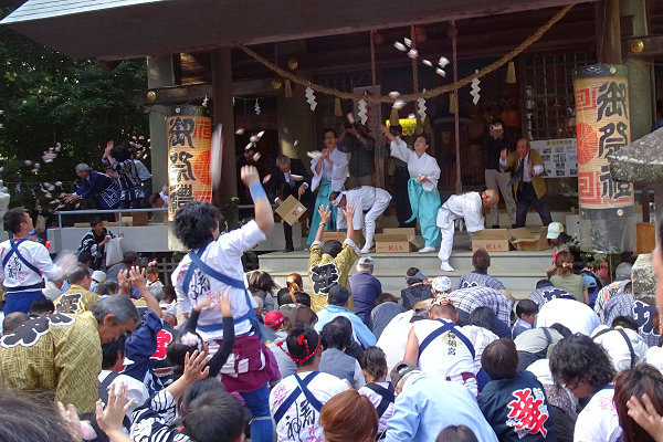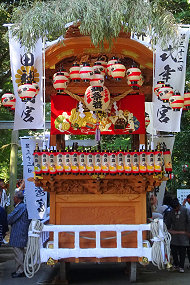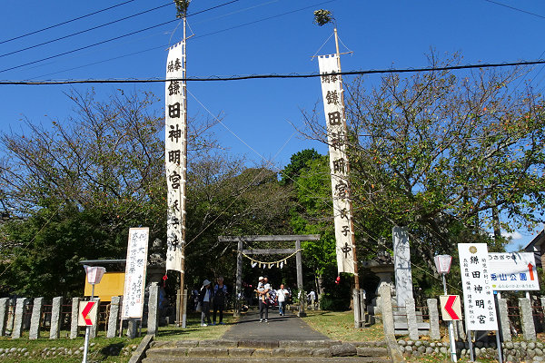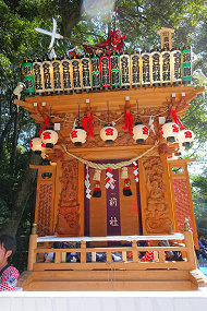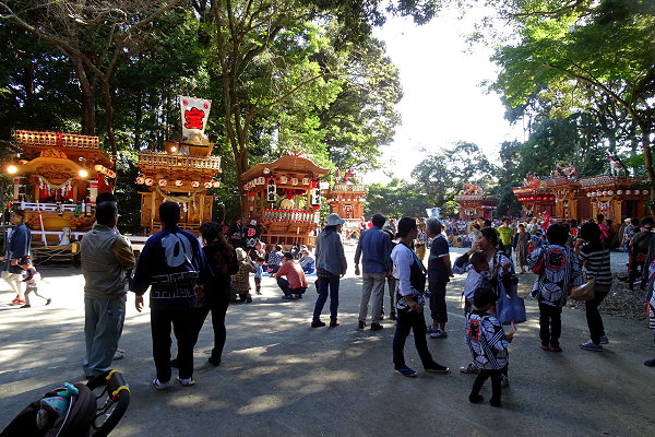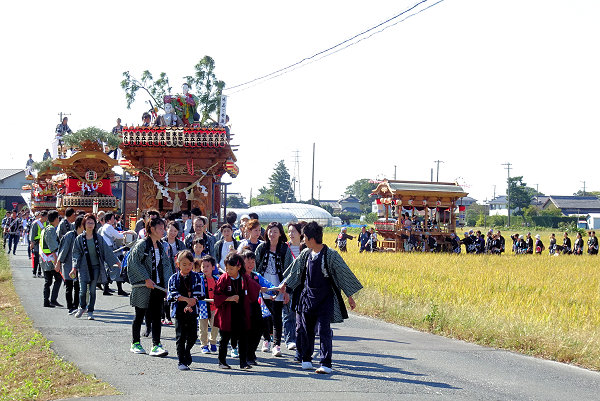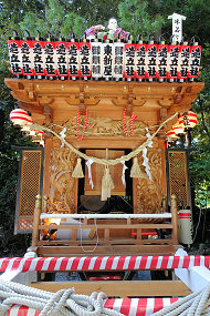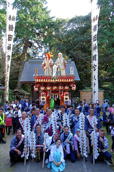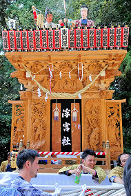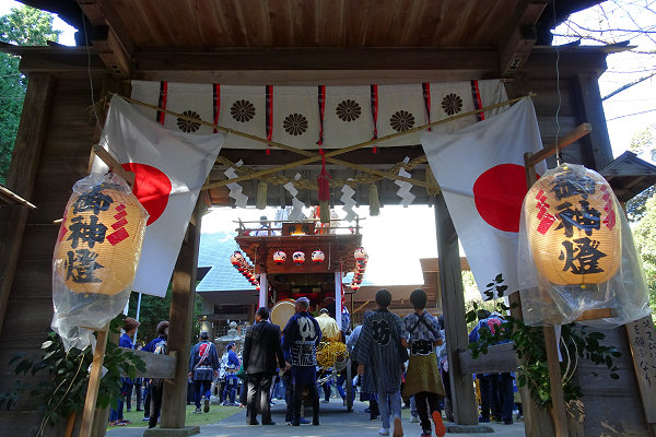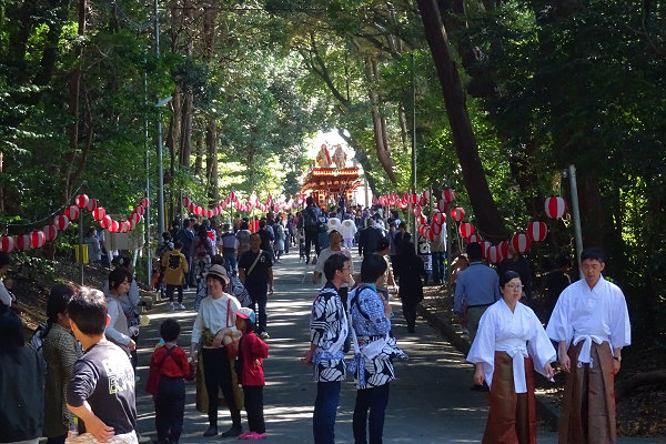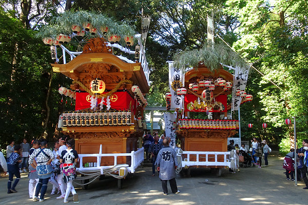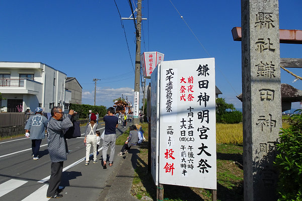 例年の秋祭りでは、まず10月第1土日から第3土曜日にかけて各氏子摂社の例大祭が順に行われます。そして第3日曜日の同社大祭では御厨地区6台の屋台が揃い、鎌田神明地区全ての部落(安久路・城之崎は除く)から役員が参列・神事が執り行われます。