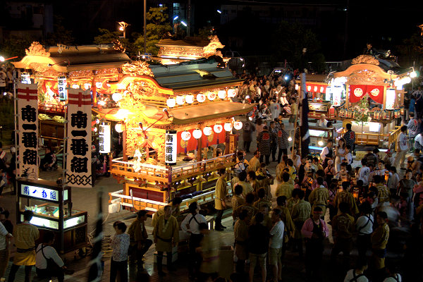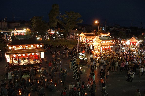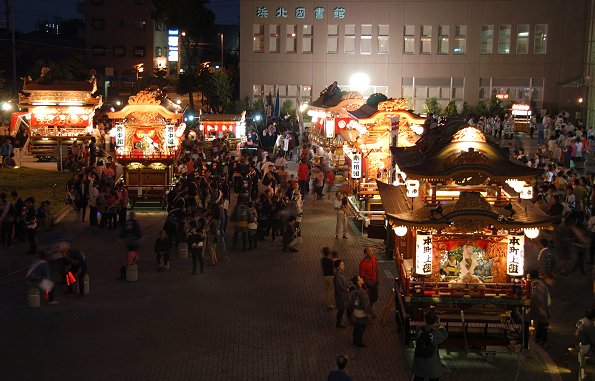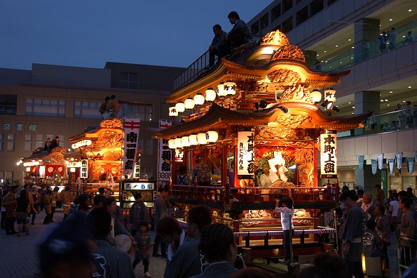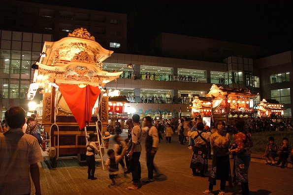 2006/08/27日曜日 浜松市 貴布祢祭り 18時半過ぎ、遠州鉄道浜北駅西側のなゆた浜北に屋台が集まります