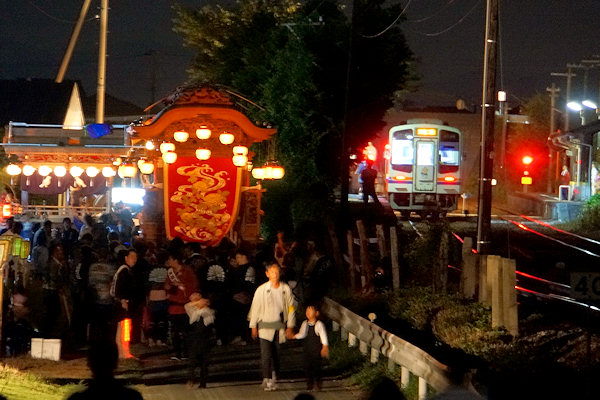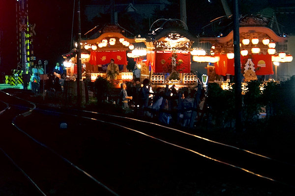↓阿多古街道踏切を渡り待機中の屋台