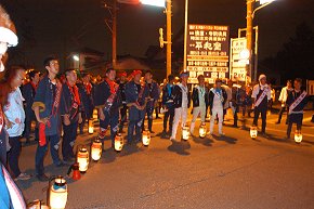 交差点にて締めの挨拶と練り |