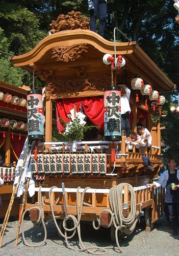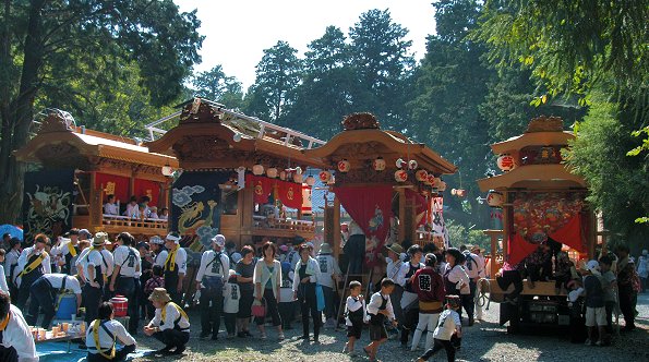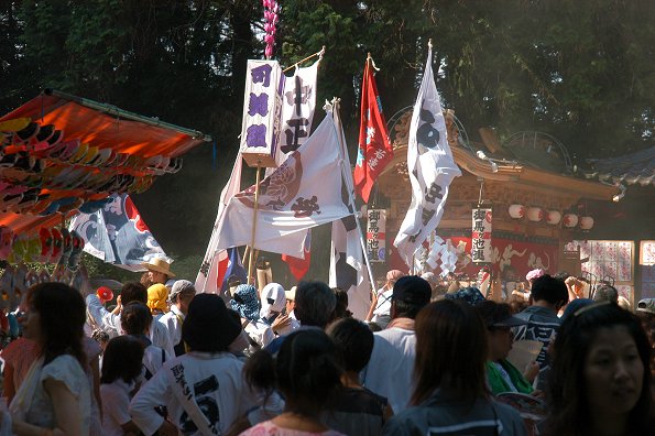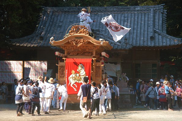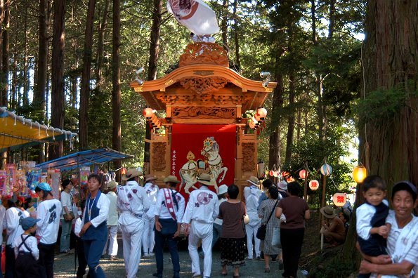 2005/08/28日曜日 浜北区於呂神社祭典 御馬ヶ池連 芝本組 中沢組 可美組 入王組 境内での練り、でもカメラの大敵砂埃が…