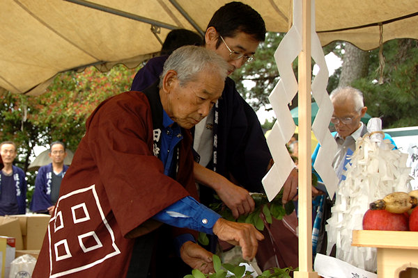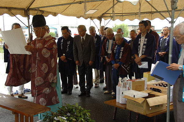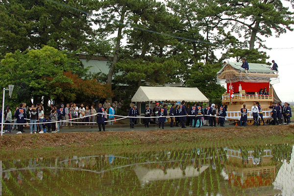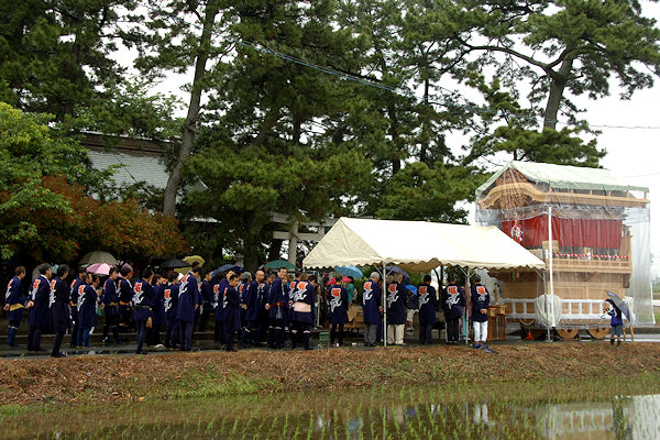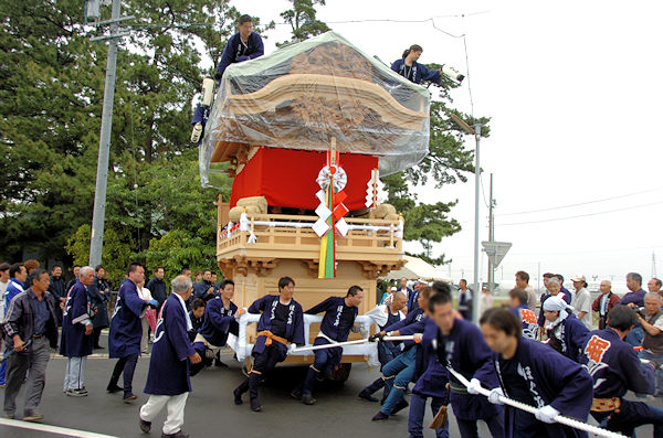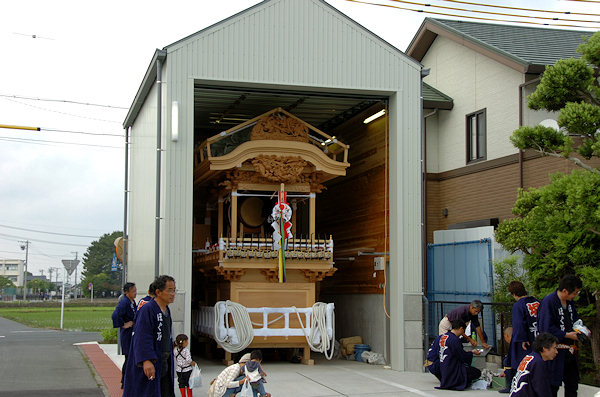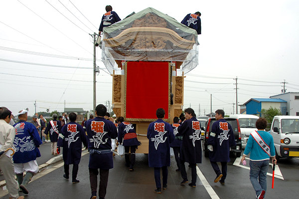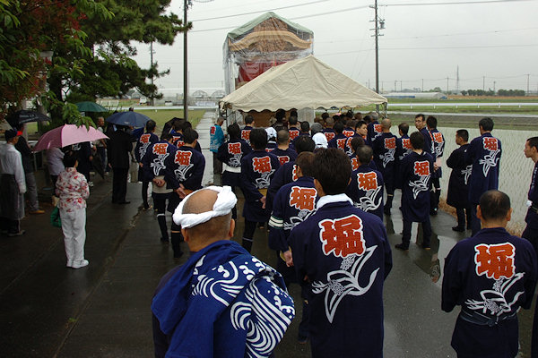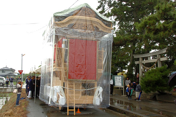 2009/05/24(日)磐田市堀之内 新屋台披露 磐田市堀之内/天白神社 9:00神事、生憎の天気で屋台にはシートがかけられています