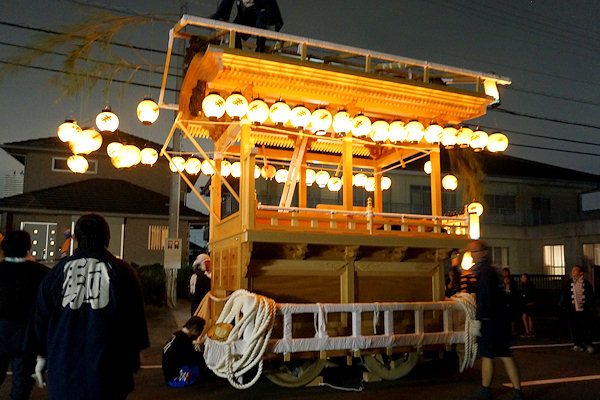 ↓夜の部は提灯の確認と練習のため幕とお囃子なしでの運行です。