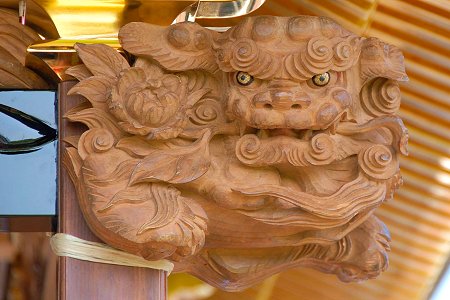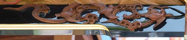 虹梁は手間のかかる立体的な浮き彫りの彫刻が施されています