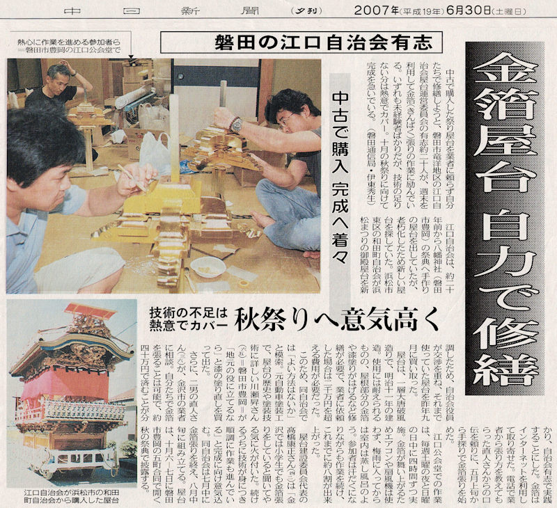 遠州福田六社神社祭典 浜松まつりの屋台と彫刻