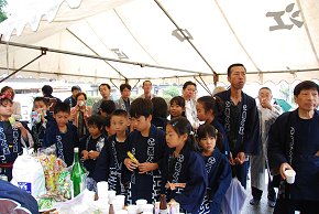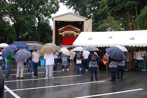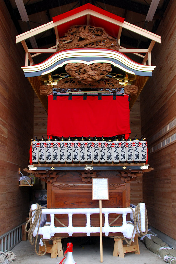 屋台は綺麗に飾り付けられて来週の祭りを待つばかり |